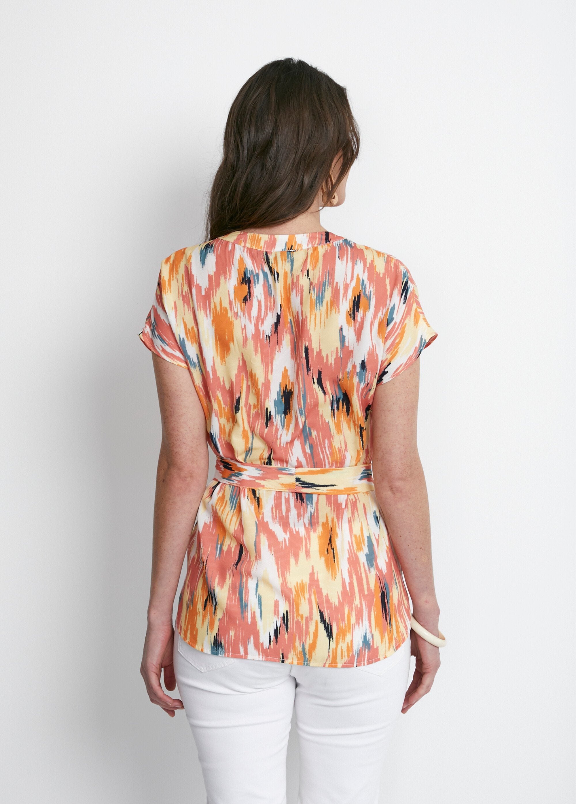 Short-sleeved_plant_print_V-neck_blouse_Multicolor_FA1_slim Short-sleeved_plant_print_V-neck_blouse_Multicolor_DO1_slim