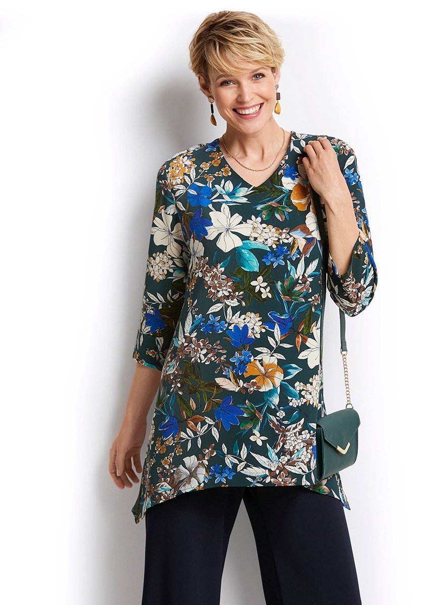 Long,_loose-fitting_floral_print_tunic_Green_print_FA1_curvy Long,_loose-fitting_floral_print_tunic_Green_print_DO1_curvy