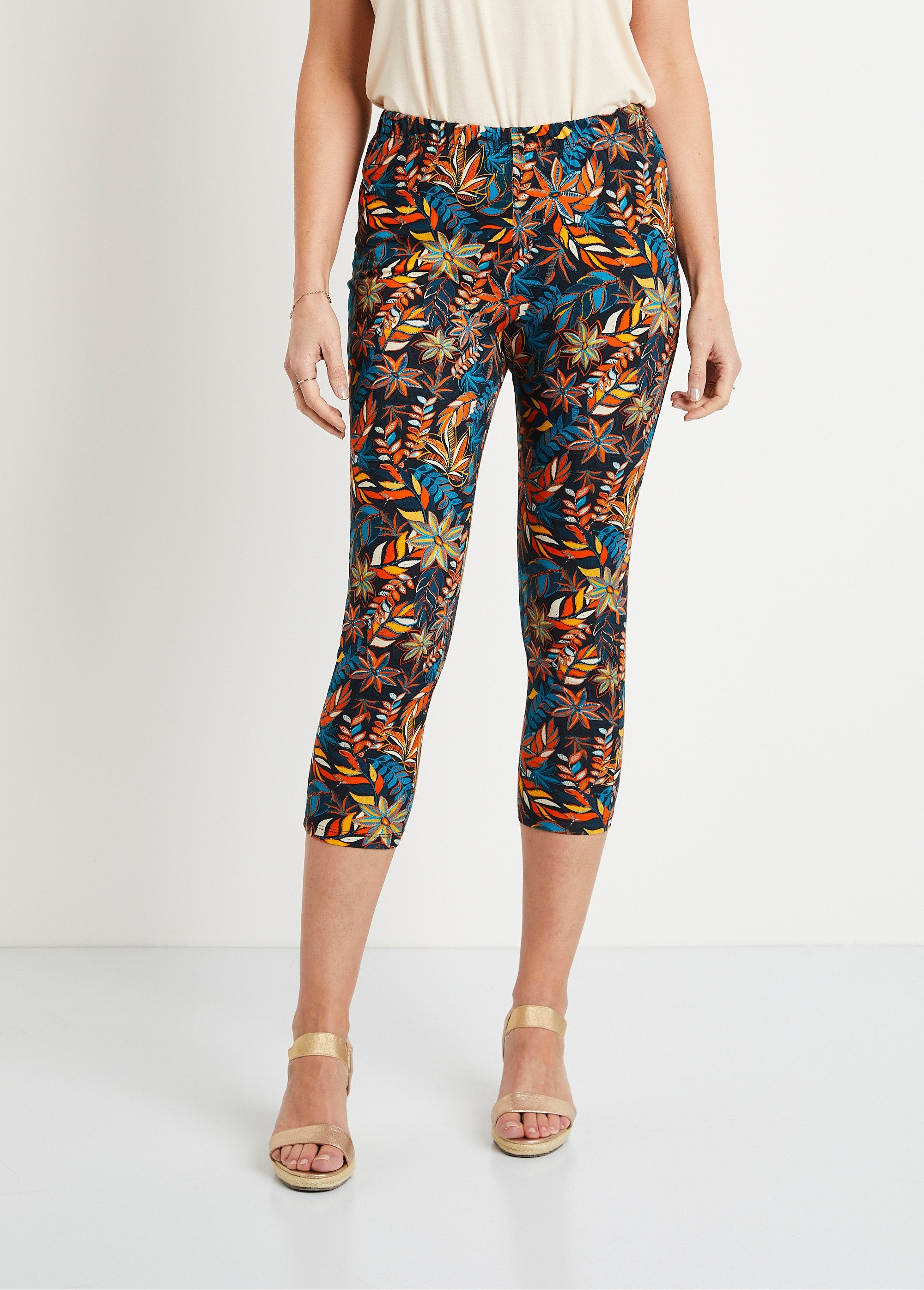 Plain or trendy plant print, the capri length leggings offer absolute comfort, also suitable for large sizes. Perfect for sunny days, it goes with a T-shirt and light sandals to create a cool, easy and comfortable outfit.