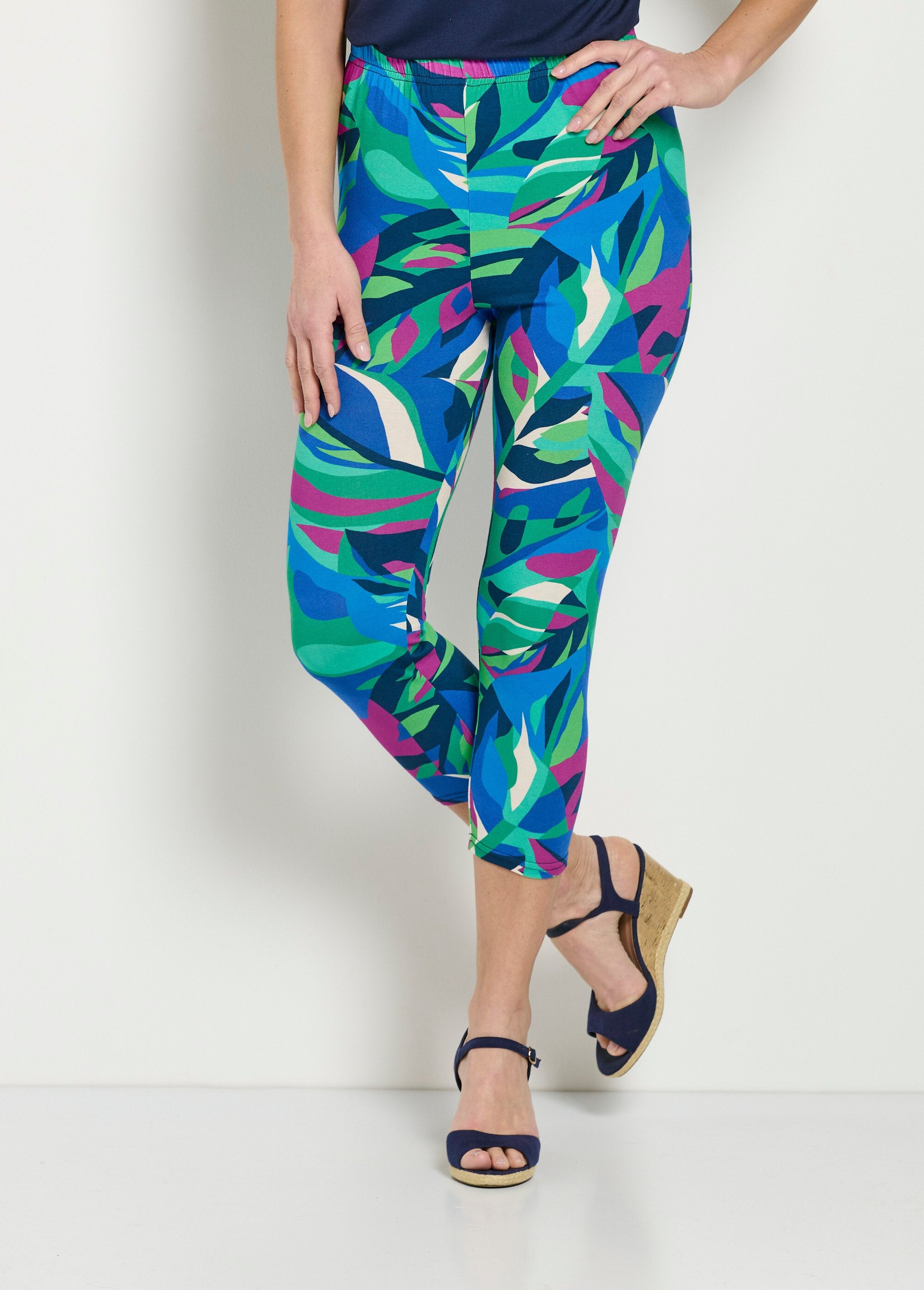 It focuses on comfort at all times and suits all figures... Plain or printed, the capri-length leggings are the champion of summer style. In ultra-soft stretch jersey, they follow all movements without losing their shape. Fully elasticated waistband. Made in France.