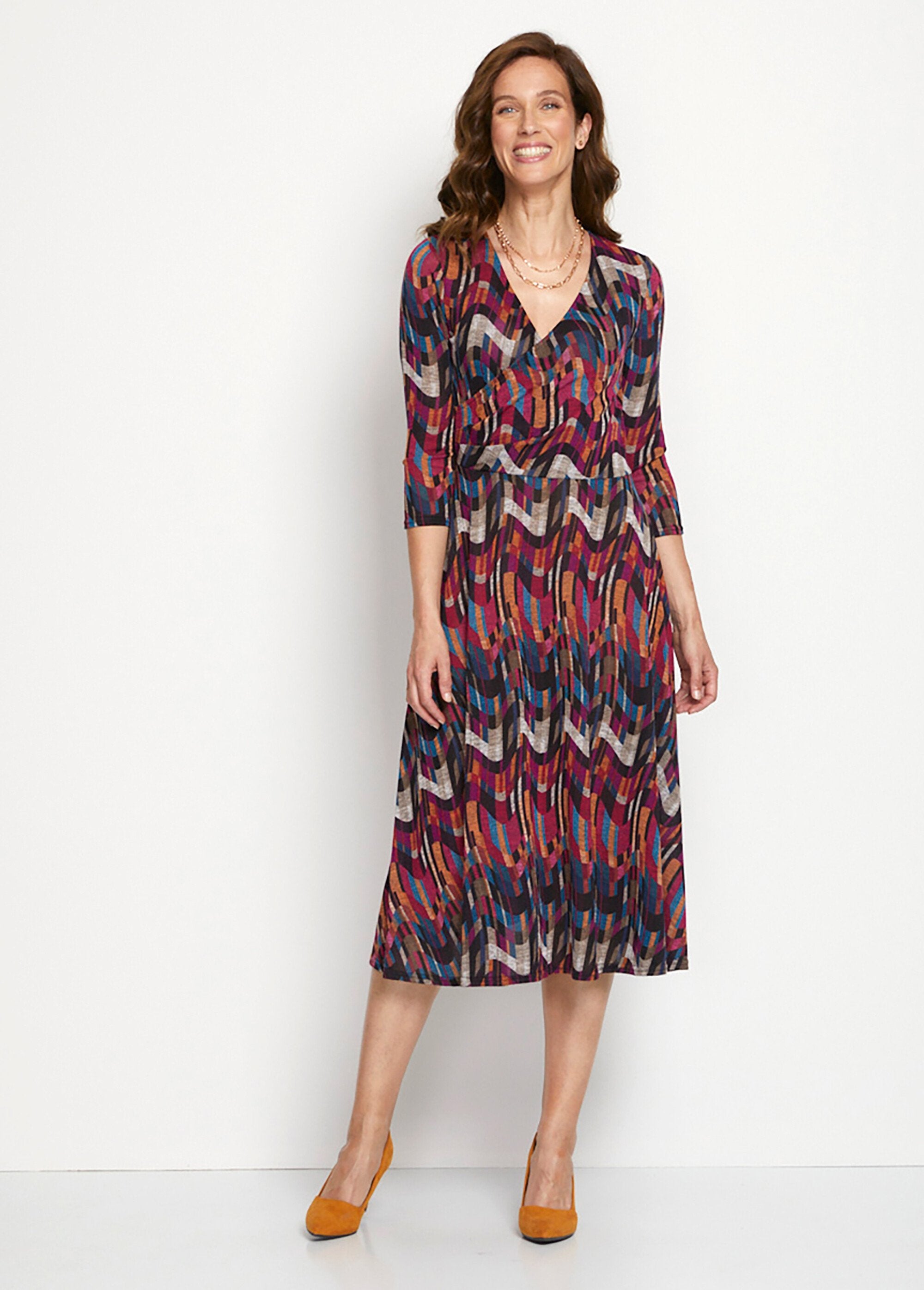 Printed_wrap-effect_mid-length_dress_Plum_and_honey_imp_DE2_curvy