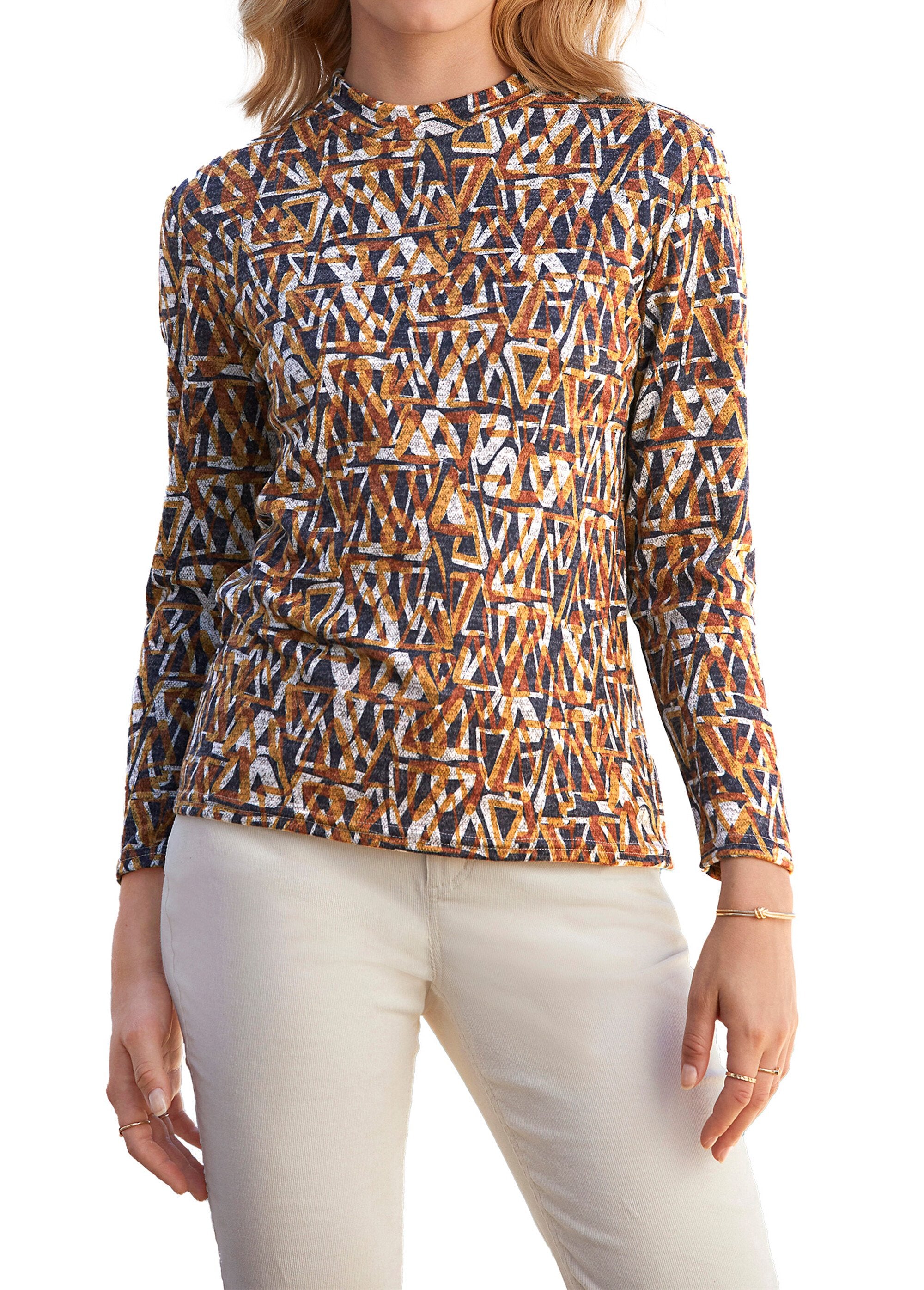 Offered in a graphic print on a mottled base, the undershirt is perfect in winter to warm up jackets, sweaters, vests or blouses. It can also be worn alone as soon as the weather is milder.